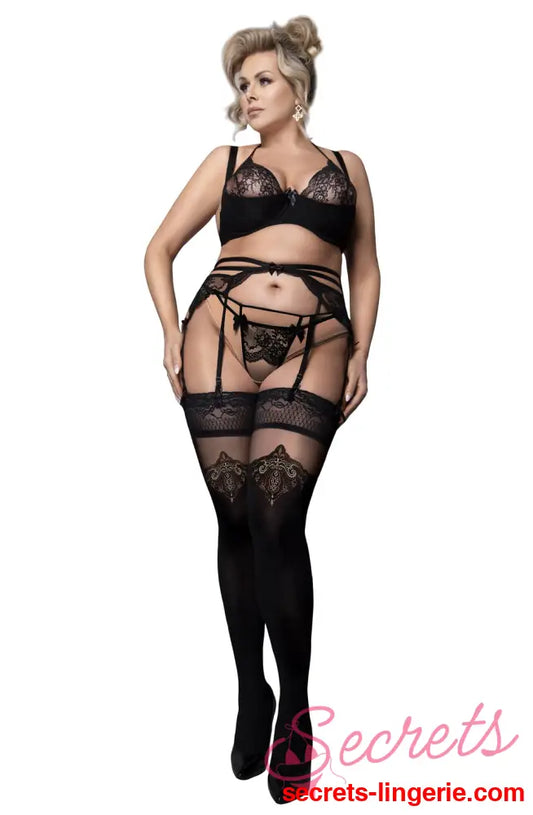Ballerina Magnetic Black and Claret Lace Hold Ups