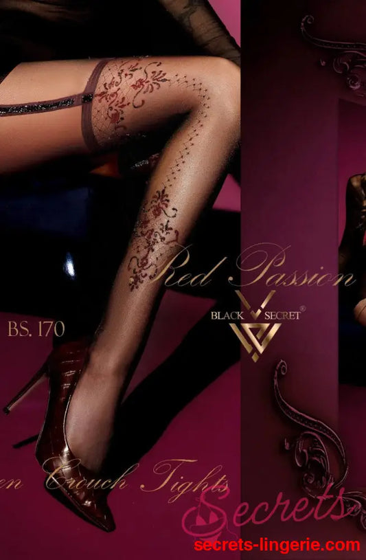 Discover the Black Secret collection of stockings, hold ups, and tights. This selection features black and skin tone options, including crotchless and open crotch designs.