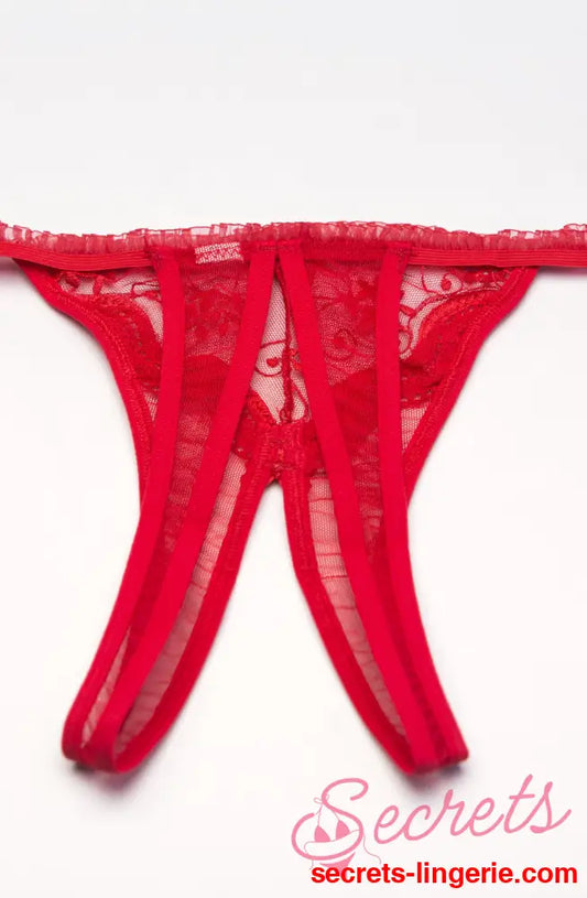 Shirley of Hollywood Scalloped Embroidered Red Thong