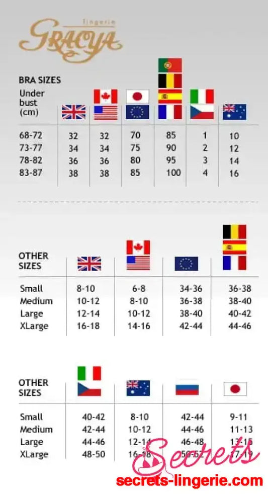 Explore the Gracya collection of elegant lingerie. This selection features Gracya bras, thongs, briefs, and corsets, including the Victoria, Ola, Cindy, and Bliss lines.